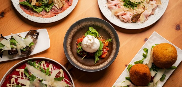 (Cela peut comprendre, selon l’inspiration et le marché : vitello tonnato, carpaccio de bœuf Holstein, arancini à la truffe, crudo de thon & burrata, caponata d’aubergines, légumes grillés, planche de charcuteries et fromages italiens…)